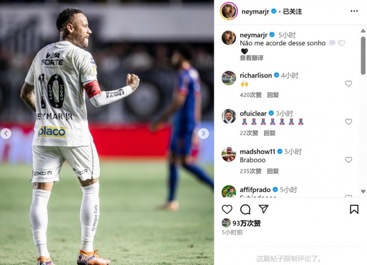 3月3日讯 圣锦标1/4决赛,内马尔破门,桑托斯2-0巴甘蒂诺红牛。本场比赛内马尔任意球破门,在加盟桑托斯以来7场比赛3球3助攻。赛后内马尔也在个人社媒晒出本场庆祝照片,配文写道:“不要把我从梦中叫醒。” 标签: 足球 内马尔