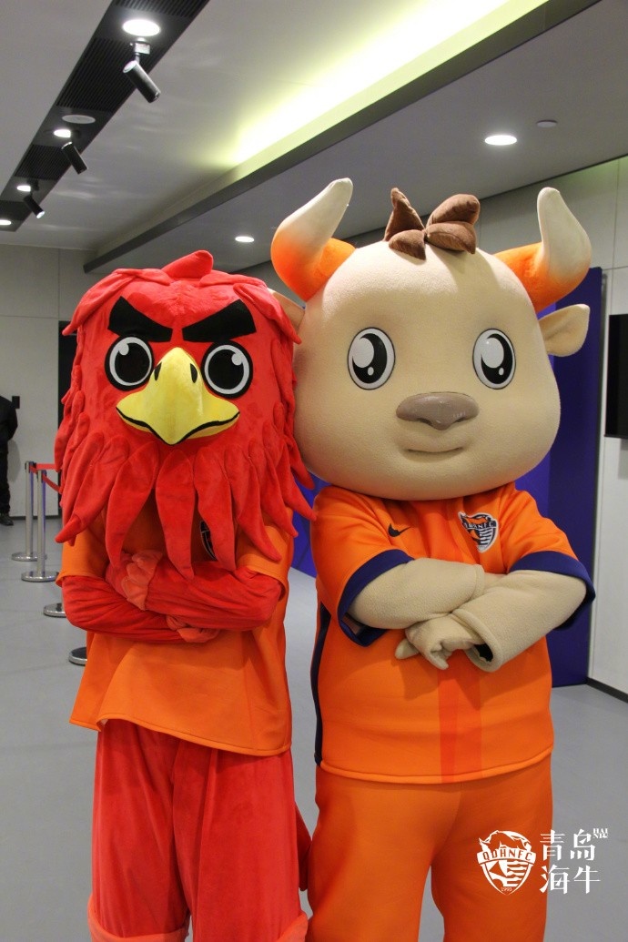 同青岛·共荣耀,在3月1日海牛主场迎战深圳新鹏城的比赛中,不少国信男篮的球迷来到青春足球场为青岛海牛加油助威,国信男篮的吉祥物“雄鹰”也与“犇犇”进行了亲密的互动。